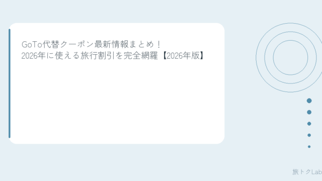 「GoToトラベルってもう終わったの?代わりになるお得なキャンペーンないの?」って思ってない?結論から言うと、GoToトラベルの完全復活は2026年現在されていないんだよね。でも、それに代わるお得な割引やクーポンは実はたくさんあるんだよ。し...