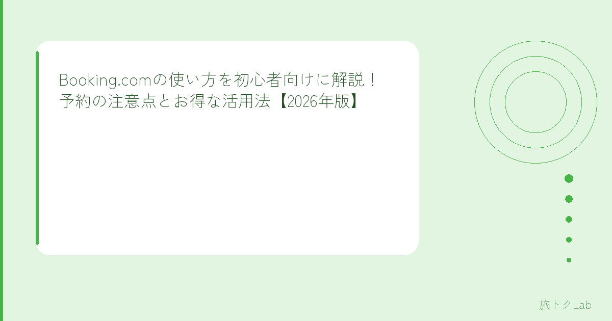 でも、「海外のサイトだから不安…」「使い方がよくわからない」っていう初心者の方も多いはず。この記事では、Booking.comの基本的な使い方から、知らないと損する注意点まで丁寧に解説していくよ!