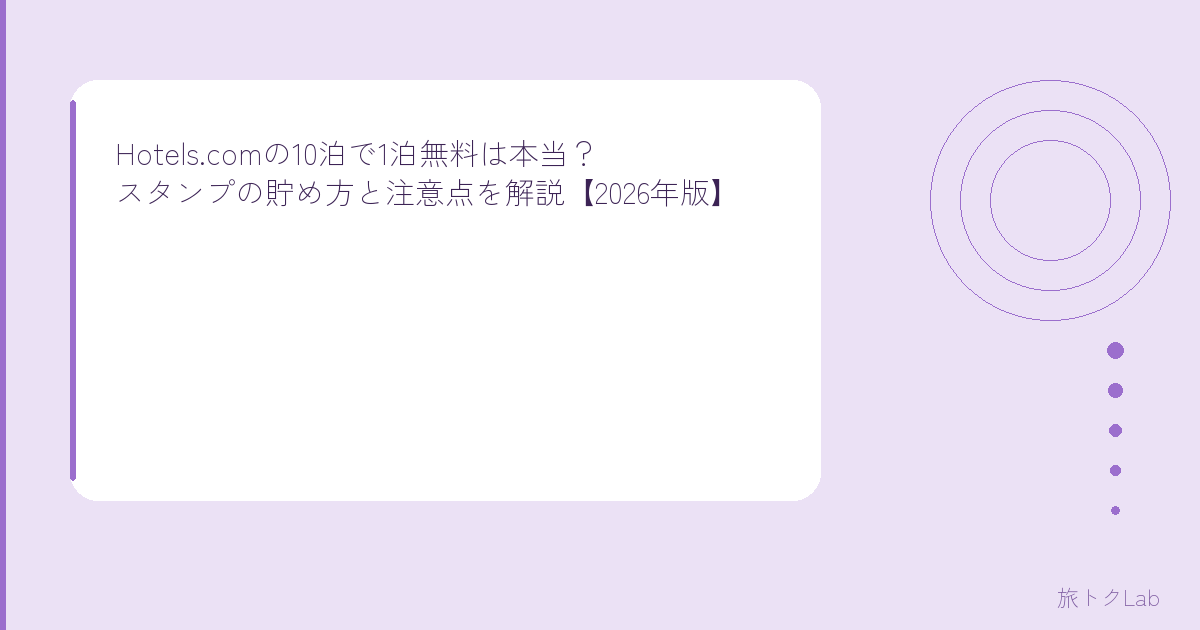 Hotels.comの10泊で1泊無料は本当?スタンプの貯め方と注意点を解説【2026年版】