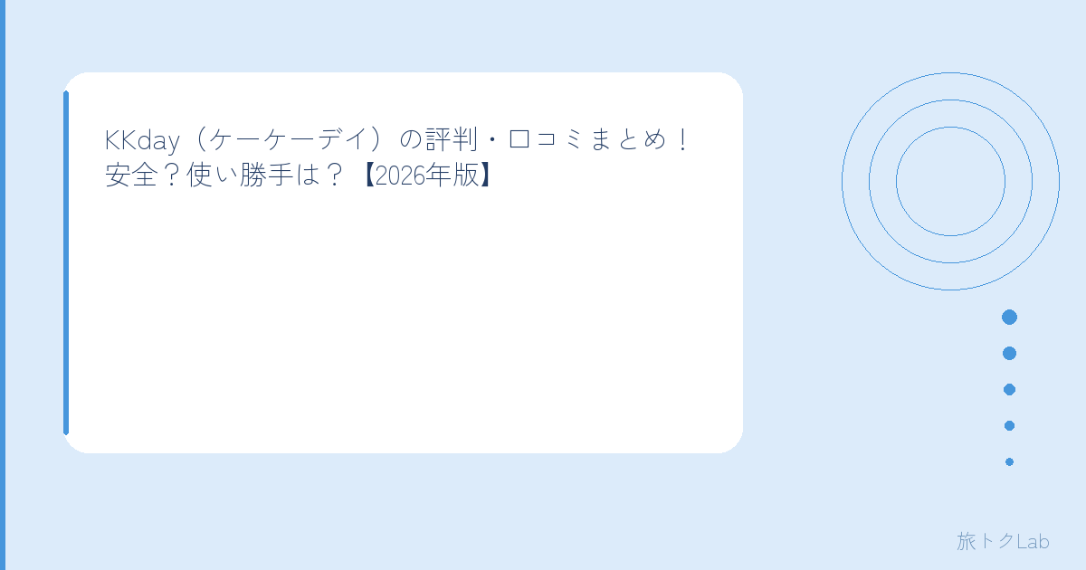 結論から言うと、KKdayは日本法人もある信頼できるサービスで、特に台湾・韓国・東南アジアのアクティビティに強いんだよね。この記事ではKKdayの評判・口コミをガッツリ調べて、メリット・デメリット・安全性・Klookとの違いまで包み隠さずまとめたよ!