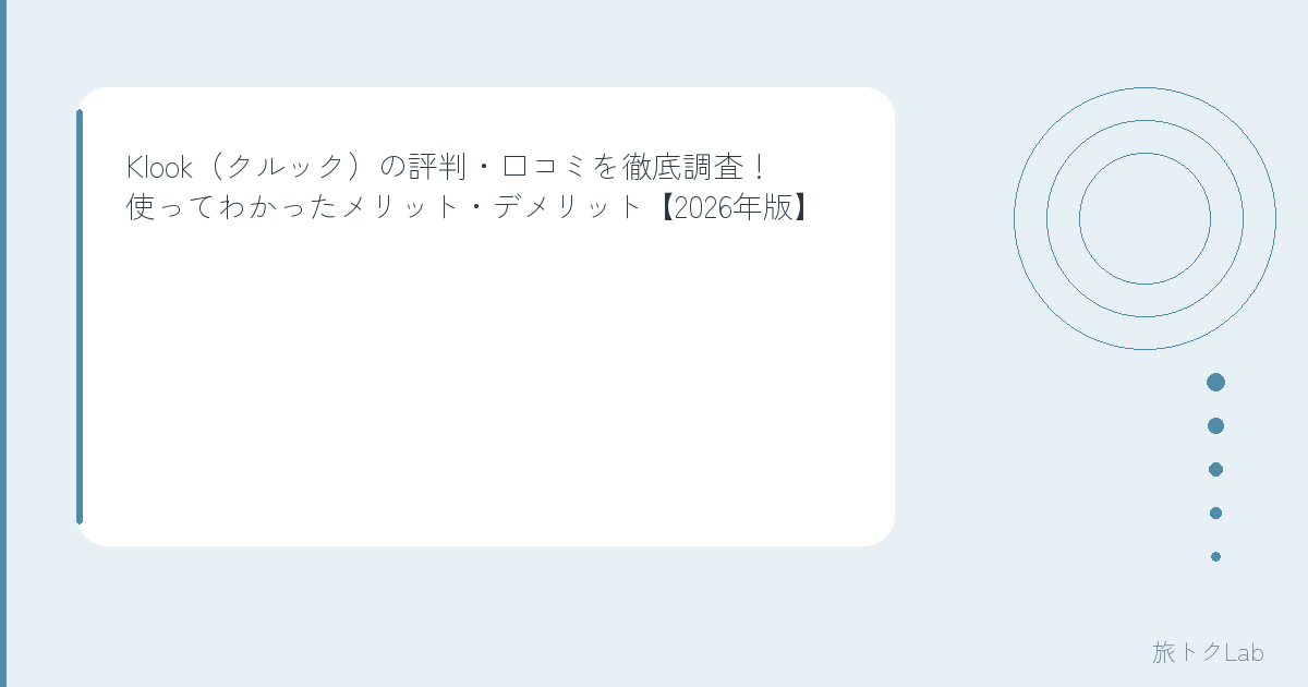 「旅行のアクティビティやチケットは、とりあえずKlookで価格チェック」っていう習慣をつけると、けっこうな金額を節約できるよ。Klook公式サイトでまずは気になるスポットを検索してみてね!