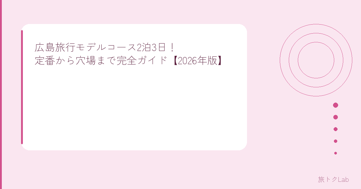 今回は、広島を2泊3日で効率よく回れるモデルコースを紹介するよ。定番の原爆ドーム・宮島はもちろん、尾道や地元グルメもしっかりカバーしてるから参考にしてみて!