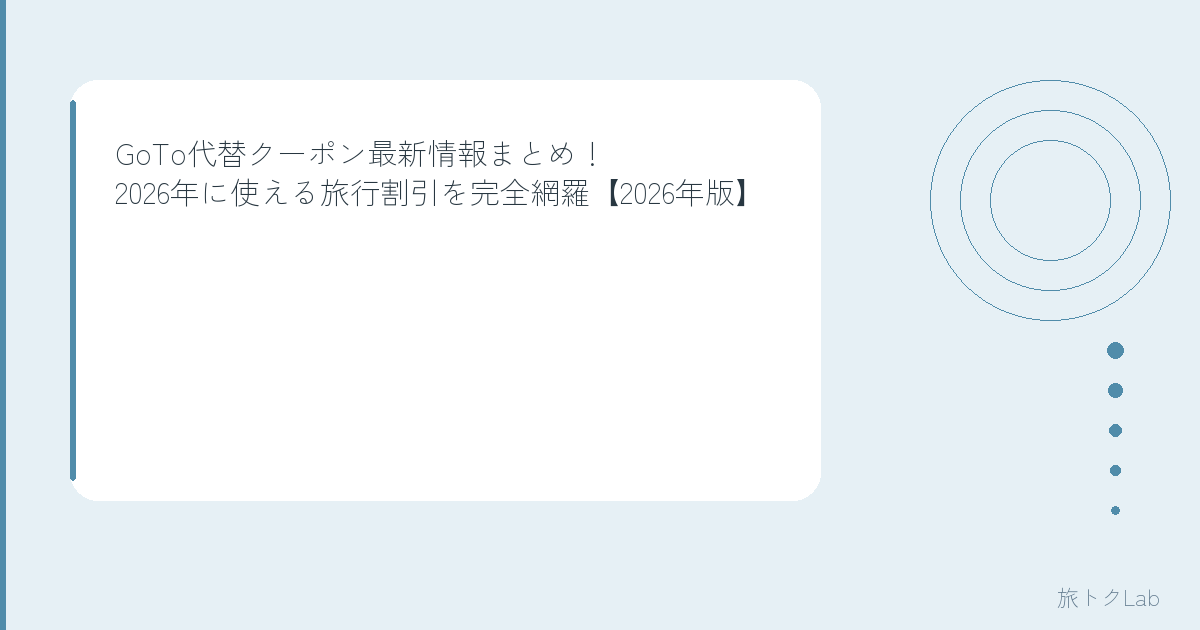 その後、全国旅行支援(2022年〜2023年)に形を変えて実施されたけど、2026年現在は国主導の全国的な旅行割引は終了している状態。ただし、各自治体や旅行予約サイトが独自にキャンペーンを展開しているから、探せばお得な割引はまだまだあるよ。